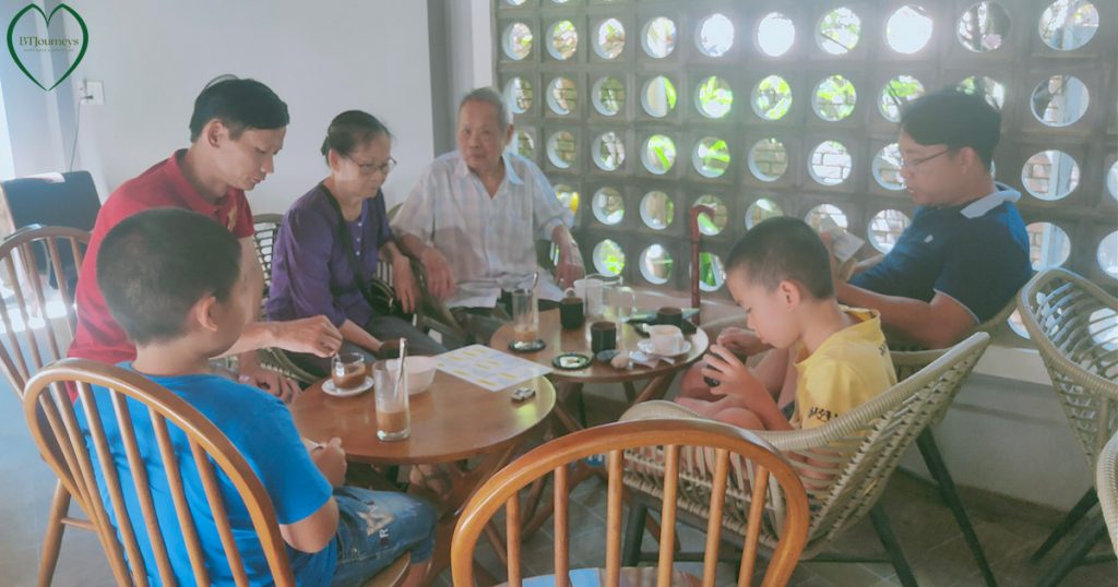 Sáng sớm con vừa thức dậy đã thấy nhà bác Thủy ra Huế. Bác Việt chở cả nhà đi ăn bún bò đường Nguyễn Du. Cả nhà hẹn ba ở quán bún, sau đó thì đi cà phê Vườn Tùng. Mẹ còn ghé chợ mua sắn rất ngon. Sau khi uống cà phê thì ông bà về nhà nghỉ, còn nhà con và chị Candy chạy trước về Cồn Tè để xem chỗ vui chơi, ăn trưa. Trong lúc chờ đợi, ba rủ mấy mẹ con chèo thuyền một vòng quanh hồ. Sau đó, nhà ngoại và 2 bác đến, cả nhà cùng ăn trưa hải sản rất vui. Con và anh Tom, chị Candy chơi domino, chơi bài. Sau đó, cả nhà còn tranh thủ ghé chơi ở rừng ngập mặn Rú Chá. Con leo lên tháp cao 50m nhìn xuống khu rừng cây và thành phố. Buổi tối Bà ngoại đặt thịt cuốn Donald Trung rất ngon. Gần khuya, con cùng mẹ và anh Tom chơi bài với ông ngoại ở bếp. Trời nóng quá nên bà ngoại cho bật máy lạnh ngủ.