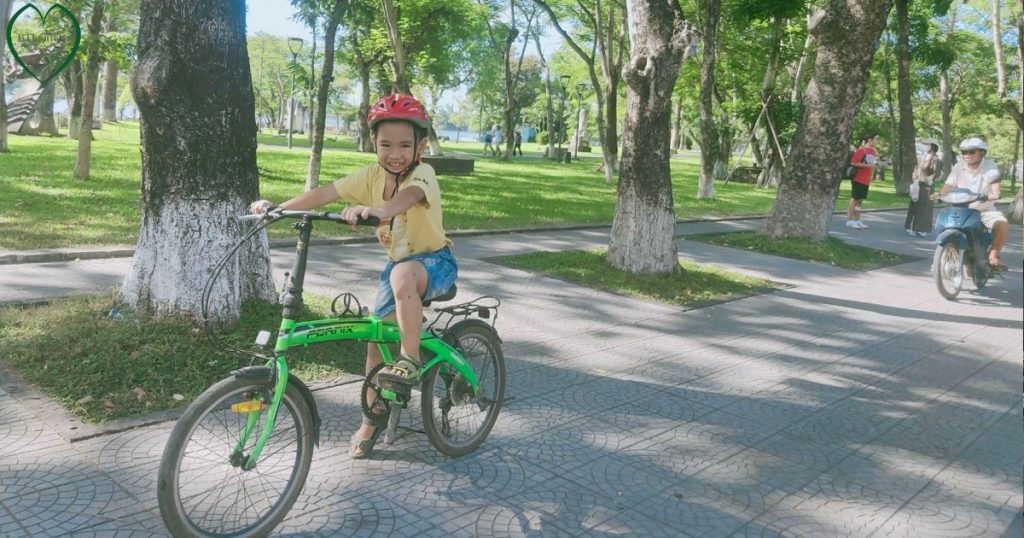 Sáng sớm mấy mẹ con cùng bác Thủy, chị Candy đạp xe đi qua cầu Đập Đá ăn bún hến. Trời mưa nhỏ nhưng con vẫn tiếp tục đạp xe đi uống cà phê Mai Uyển. Ban đầu định ngồi gần bờ sông để ngắm cảnh nhưng trời mưa to nên đành chuyền vào trong nhà. Khi trở về thì cả nhà đạp ngang chợ Cống để mẹ mua sườn heo và mua sắn về ăn trưa. Buổi chiều sau khi ngủ dậy, con lại cùng mẹ, anh Tom, bác và chị đạp xe đi ăn chè Ông Lạc. Quay trở về gần tối thì rủ bà ngoại ra công viên đi dạo chơi, xem hội chợ sách. Buổi tối cả nhà ăn cơm sườn rồi đi ngủ sớm để hôm sau con còn đi Khe Sanh.